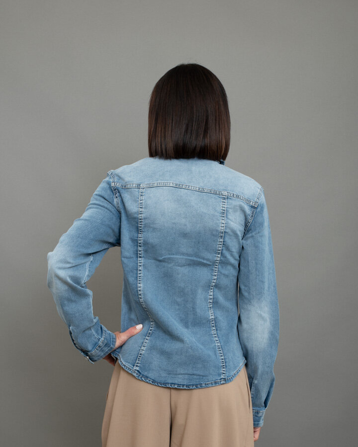 Camicia basic denim con bottoni madreperla