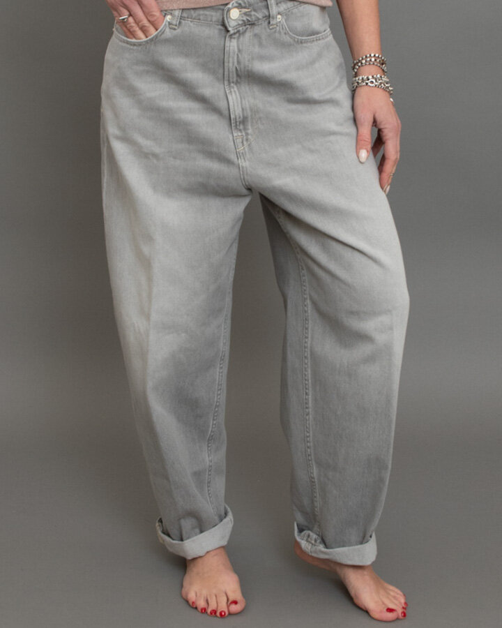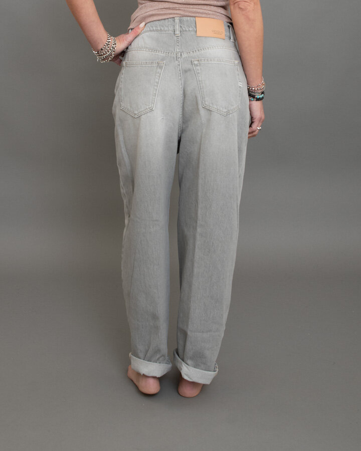 Jeans dal lavaggio grigio chiaro, pensati per un look casual e senza tempo.