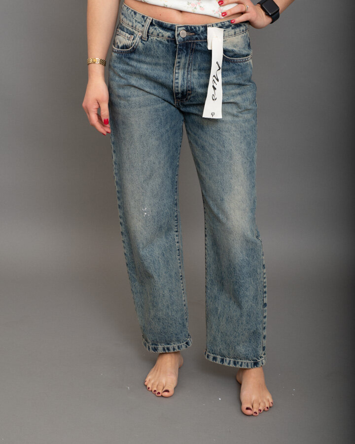 Jeans a vita alta con gamba morbida, lavaggio blu sfumato e linea rilassata.