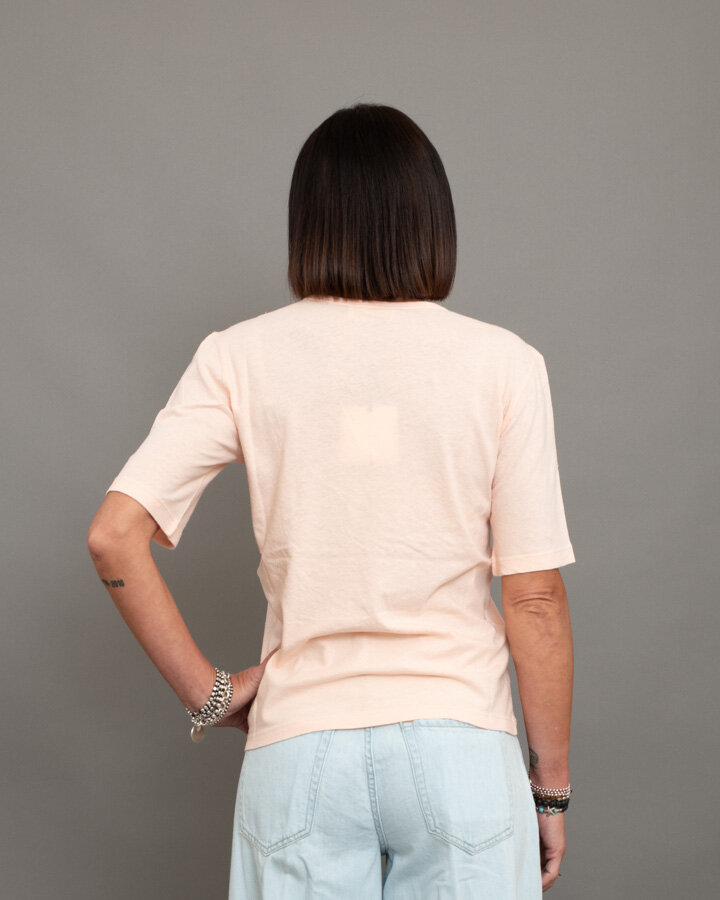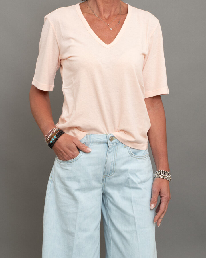 T-shirt misto lino scollo a “V”